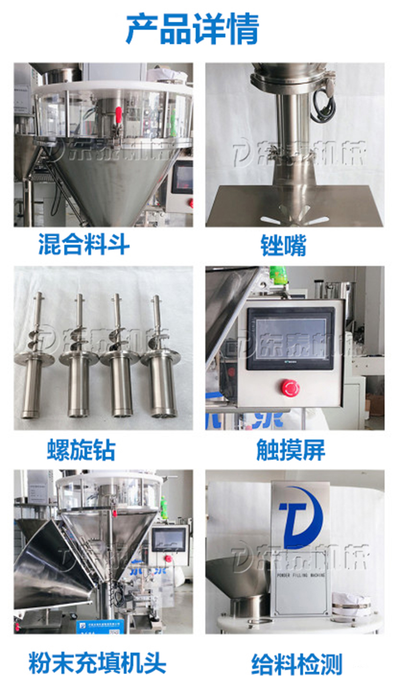 2、粉劑包裝機(jī)適合袋類、罐類、瓶類等各種包裝容器粉劑定量包裝。
